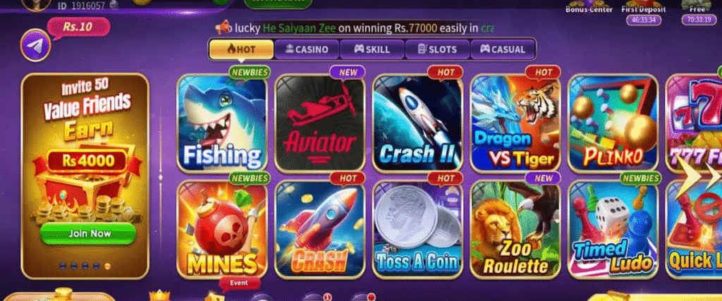This is a new online branded casino app that offers real casino games to users. You can play the games with real players. The games are user-friendly in design, and users have a higher chance of winning the bet. Secondly, the app offers many features to the user, like referral earning, easy withdrawal, collection of games, etc.